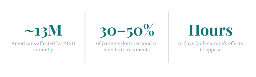 The current first-line treatments? Therapy (especially trauma-focused CBT and EMDR) and antidepressants like SSRIs and SNRIs. For many people, these work well. But for a significant portion — estimates suggest 30% to 50% of PTSD patients — standard treatments provide only partial relief or none at all. That’s a lot of people living in a constant state of survival mode.